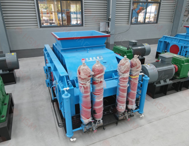 三、出料粒度的調(diào)節(jié):兩輥小。墊片裝置是通過增減墊片的數(shù)量或厚薄來調(diào)節(jié)出料粒度大小的,當(dāng)增加墊片時(shí)兩輥輪間隙變大,當(dāng)減少墊片時(shí)兩輥輪間隙變小,出料粒度變小。